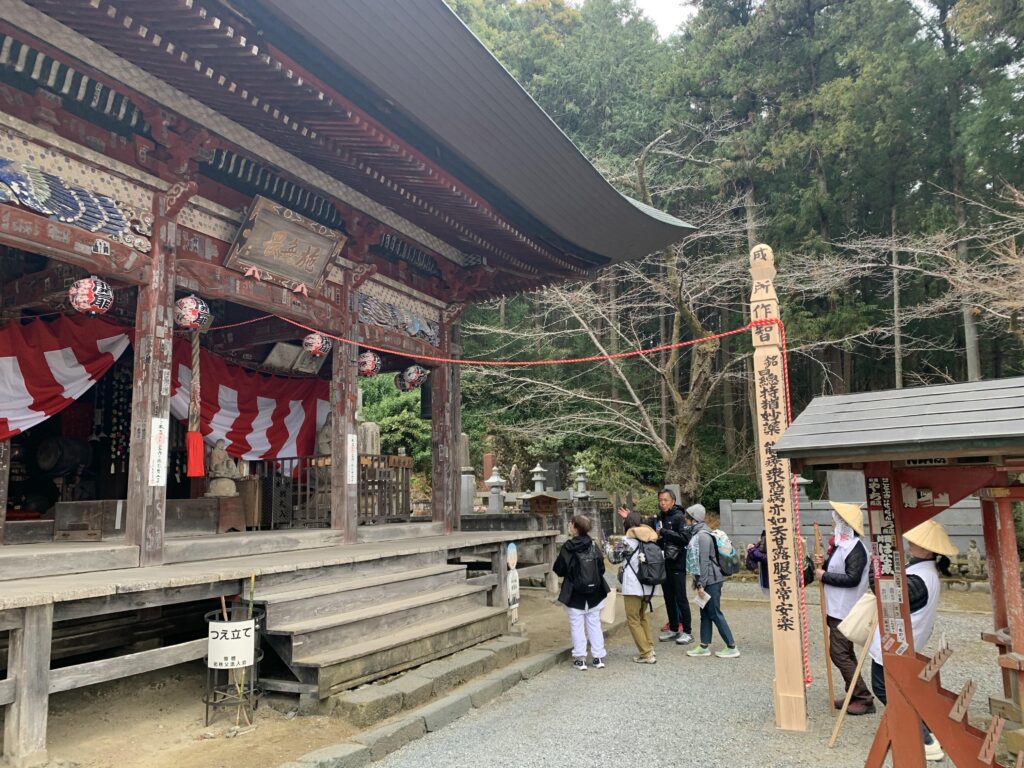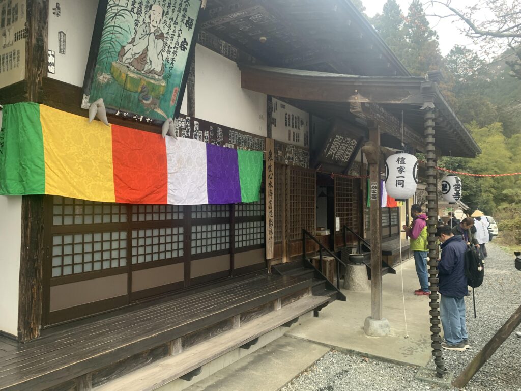 まだ参加者のみなさんがどれくらいのペースで歩けるかわからなかった上に、札所二番真福寺は山の中腹にあります。ゆっくりとしたペースで歩きながら様子をうかがいながら歩きました。坂道が急なところでは何回か休憩を入れながら先に進みました。参加者の間で少しペースの差が出ましたが、全員でお参りすることができました。札所二番は納経所が山から下りたところにある光明寺です。ここも先ほどみたいに混んでいたらどうしようと思っていたのですが幸いにも数人並んでいる程度でした。